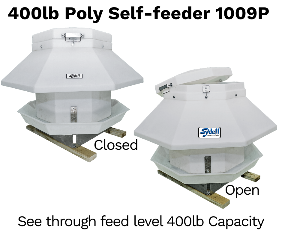 400lb Sydell Poly Self Feeder, a durable and efficient solution designed to streamline the feeding process for your livestock. With a visible grain level, 400lb capacity, and convenient dimensions of 46" wide by 42" high, this feeder is engineered to meet the feeding needs of your animals while maximizing convenience and functionality.