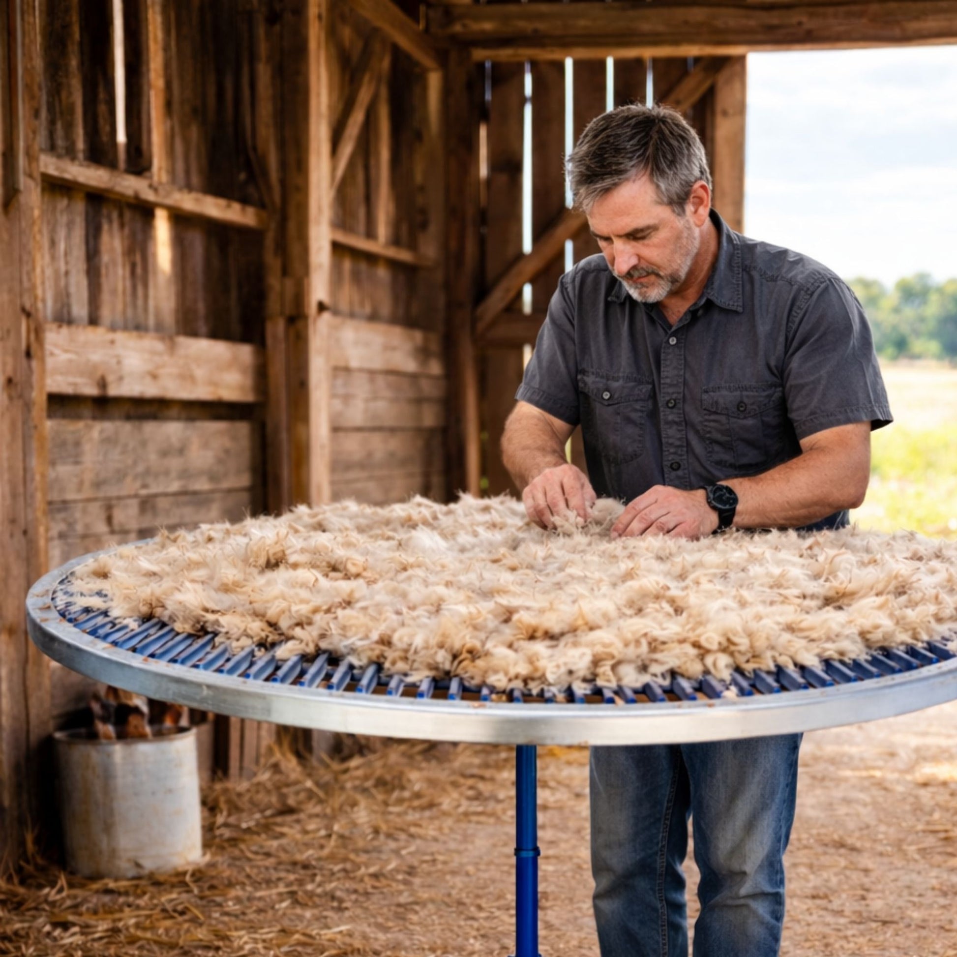 - Revolving Design: Features a revolving table design, allowing for easy access to all sides of the wool fleeces for thorough skirting.